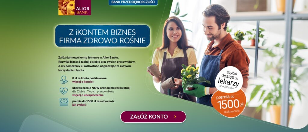 Załóż darmowe konto firmowe w Alior Banku. Rozwijaj biznes i zadbaj o siebie oraz swoich pracowników. A my pomożemy Ci rozkwitnąć, nagradzając za aktywne korzystanie z konta.0 zł za konto podstawowe więcej o koncie ›
