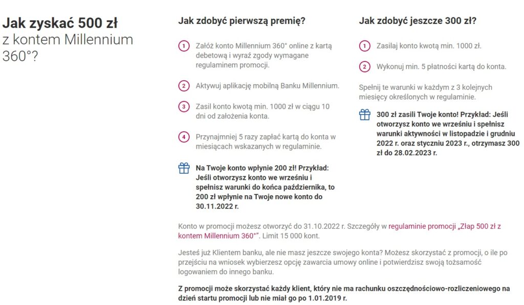 Do końca października 2022 roku Bank Millenium oferuje 500zł za otwarcie konta osobistego